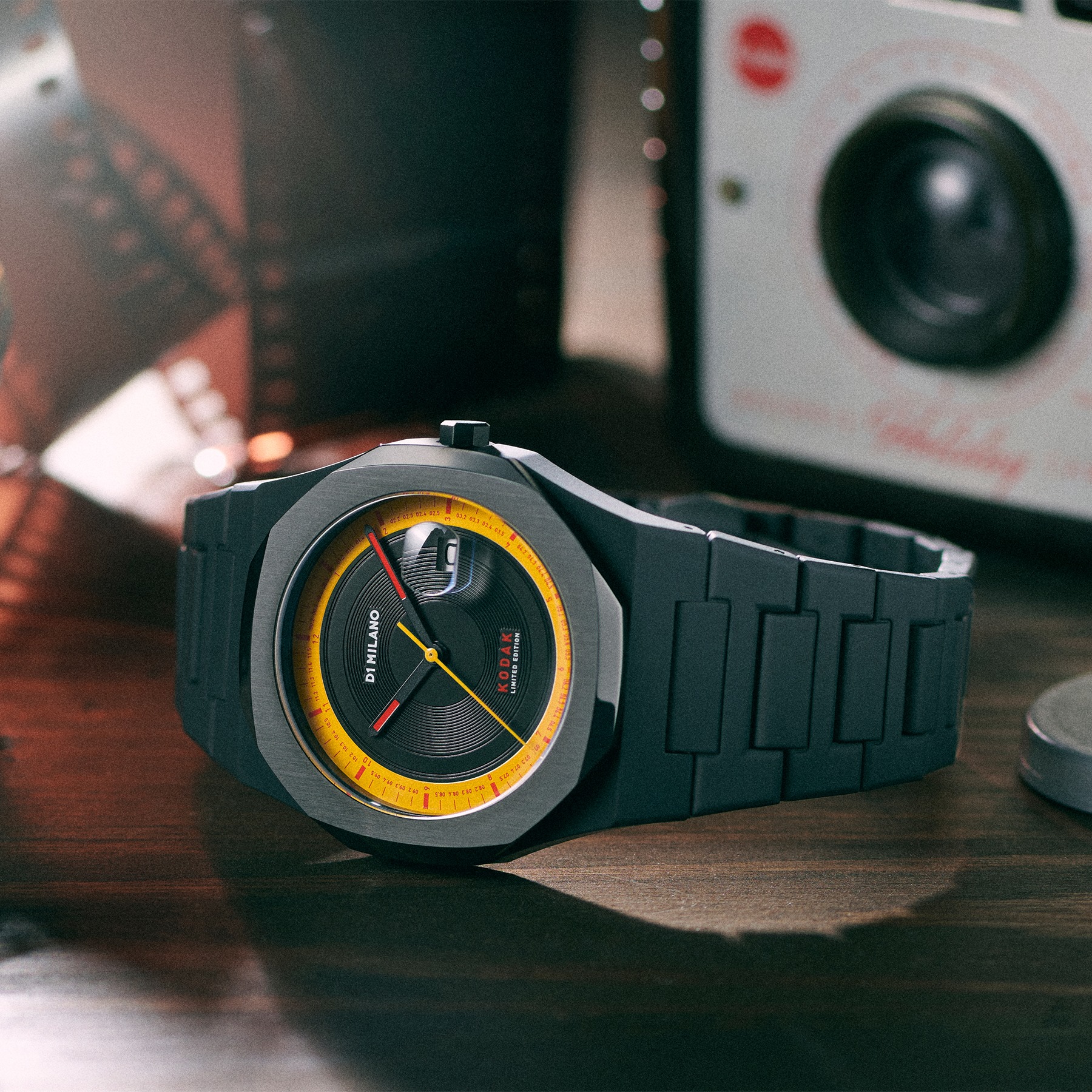 หน้าปัดถูกออกแบบให้มีลายละเอียดคล้ายกับวงแหวนเลนส์กล้อง และมีแถบสีที่ชวนให้นึกถึงกล่องฟิล์ม Kodak ในสมัยก่อน กล่องนาฬิกาถูกดีไซน์มาให้เหมือนกับกล่องใส่ฟิล์ม 35 มม. หรือกล่องกล้องวินเทจ “Kodachrome Limited Edition” ผลิตเพียง 1,000 เรือนเท่านั้น ทำให้คอลแลบโดนใจทั้งสายสะสมนาฬิกาและสายถ่ายภาพ
