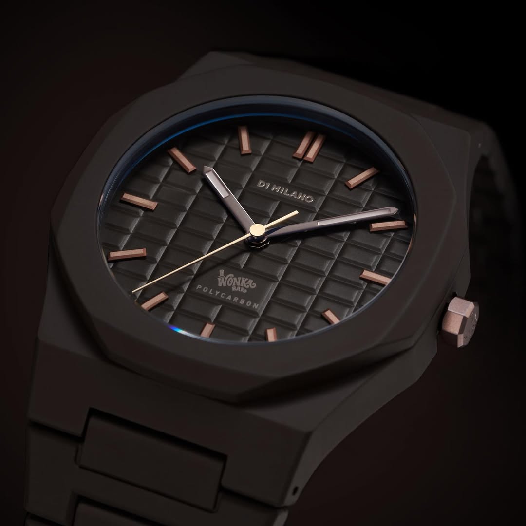 ครั้งนี้ร่วมงานกับภาพยนตร์ Willy Wonka & The Chocolate Factory ที่ใคร ๆ ก็หลงรัก นาฬิกา Polycarbon รุ่นพิเศษนี้ถูกเนรมิตให้เป็นสีน้ำตาลทั้งเรือนแบบ Monoblock ซึ่งได้แรงบันดาลใจโดยตรงจากแท่งช็อกโกแลตอันแสนอร่อยของ Wonka ด้วยเทคนิคการเคลือบสี IP Brown ที่สม่ำเสมอทั่วทั้งตัวเรือนและสายนาฬิกา มอบลุคที่ดูเข้มข้น สุขุม แต่แฝงไปด้วยความสนุกสนาน