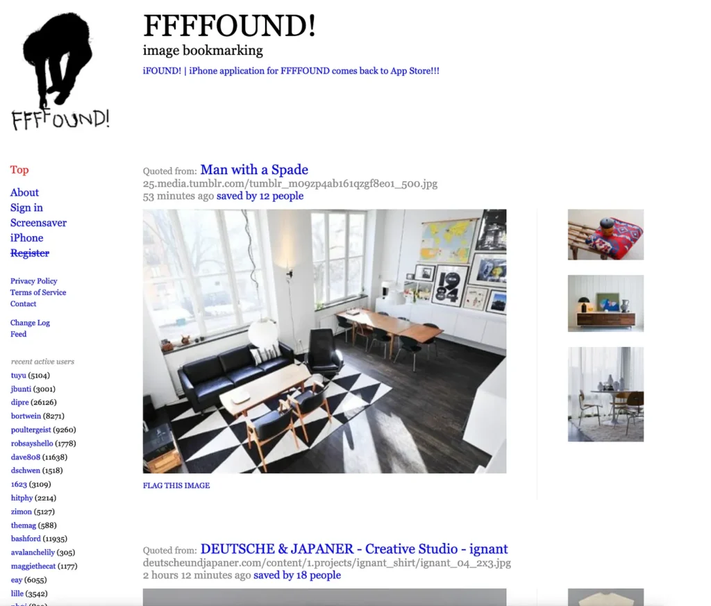 ที่มาของชื่อนี้มาจาก FFFFound เว็บไซต์บุ๊กมาร์กรูปภาพสำหรับเหล่าผู้ที่ได้รับเชิญเท่านั้น เปิดให้บริการตั้งแต่ปี 2007 ถึง 2017 เว็บไซต์นี้ถือเป็นผู้บุกเบิกที่ดีไซน์เนอร์ใช้ในการบันทึกและแบ่งปันภาพในรูปแบบการเลื่อนดูแบบไม่มีที่สิ้นสุด