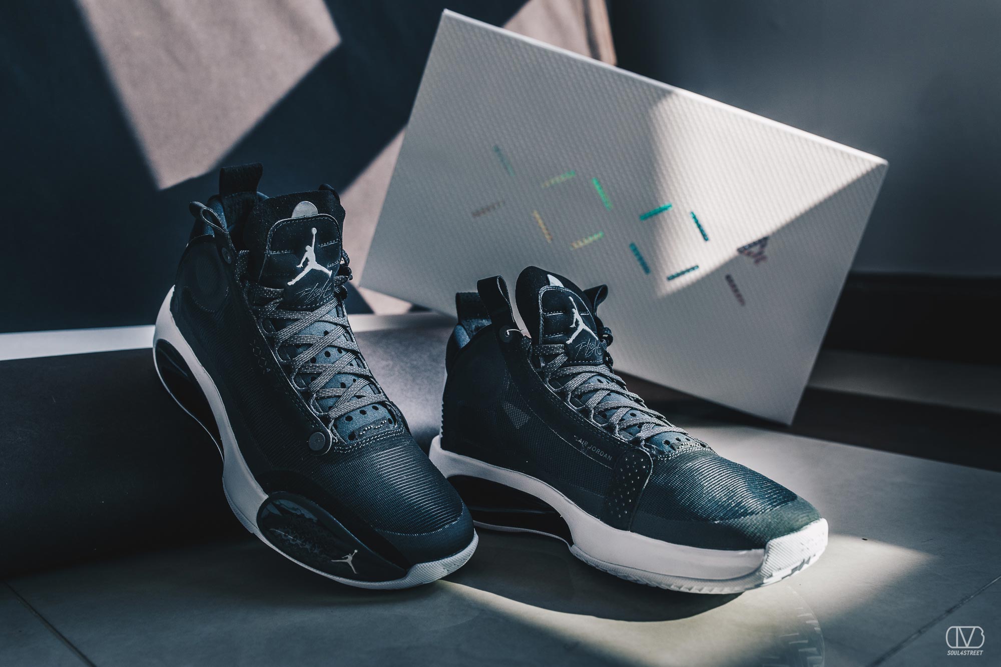 Nike Air Jordan XXXIV PF มาพร้อมกับสีใหม่ล่าสุด “ECLIPSE” โดยตัวรองเท้าจะเป็นสีสุดเรียบง่าย ดำ-ขาว ซึ่งเป็นสีที่ใส่ง่ายมากๆ สามารถนำไปมิกซ์แอนด์แมทช์ได้อย่างหลากหลาย จะใส่เล่นบาสเกตบอลก็ดี แถมยังนำไปใส่เที่ยวได้แบบสบายๆเลย แถมรุ่นนี้โลโก้ Jumpman ที่ด้านหลังรองเท้าก็ยังดีไซน์ออกมาแบบพิเศษอีกด้วย โดยเป็นการทำให้โลโก้เป็นแบบ Shadow ซึ่งมันก็เท่ไปอีกแบบ